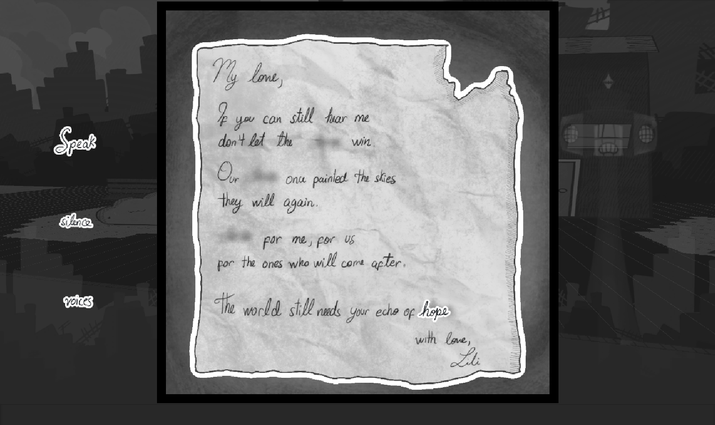 Determined to share this spark, ECHO sets out across the city. With every encounter, she listens, helps, and restores what was lost, teaching others to find the strength to speak again. But to awaken the city completely, she’ll need their voices beside hers.