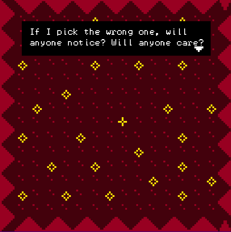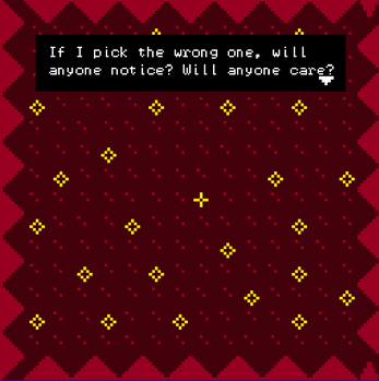 It's a beautiful game about self reflection that touches. Many people have self-doubts. This game could be even better with four different end-monologues, depending on what you choose in the last sequence - love, family, career or money.